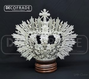 El resultado final es un aro que combina majestuosidad y delicadeza, convirtiéndose en un complemento esencial para realzar la dignidad y la solemnidad de la figura que acompaña. Su diseño atemporal, elaborado con materiales nobles y técnicas tradicionales, lo transforma en un testimonio perdurable de la maestría artesanal que caracteriza a nuestra orfebrería.