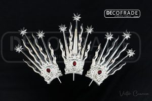 El acabado en baño de plata otorga un brillo uniforme y duradero, que resalta la nobleza de los relieves y los motivos ornamentales cuidadosamente elaborados. Cada línea y curva ha sido diseñada para equilibrar fuerza y elegancia, asegurando que la cruz conserve su imponente presencia sin perder delicadeza. Los detalles decorativos, fruto de un trabajo minucioso, muestran la tradición orfebre de nuestros talleres, donde cada pieza es única y refleja el conocimiento heredado de generaciones de artesanos.